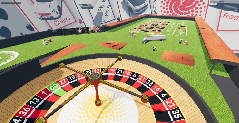 This is a map mod for BeamNG game. It consists of a Giant Roulette Table (Scale 100 : 1). This map has some dynamic props you can interact with, like for example a giant Roulette Wheel that actually spins (using up and down arrow to spin it) and Chip Stacks that you can ram with vehicles.